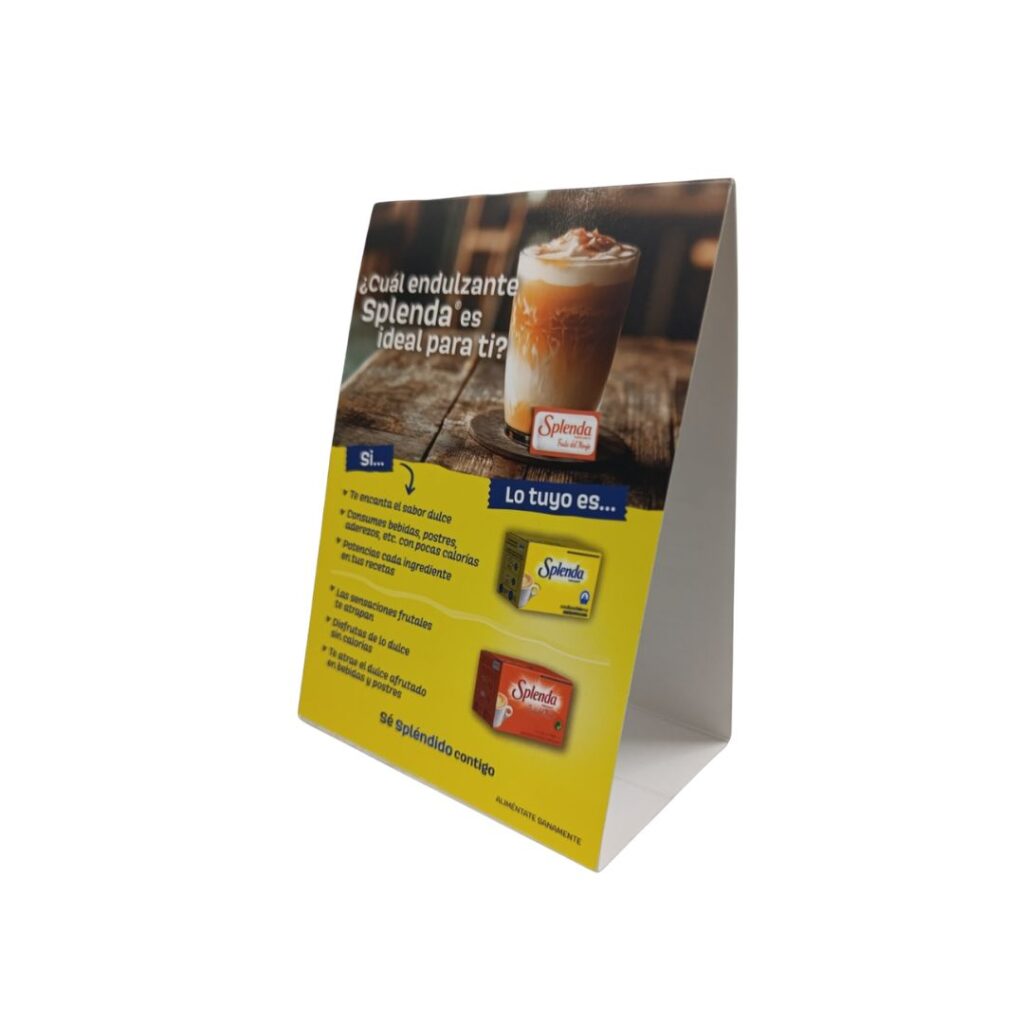 Cuando la ejecución en punto de venta exige consistencia entre ubicaciones, Boski desarrolla habladores en sulfito y PVC (rompetráfico, saltarines, tent cards), así como afiches, colgantes y ristras.